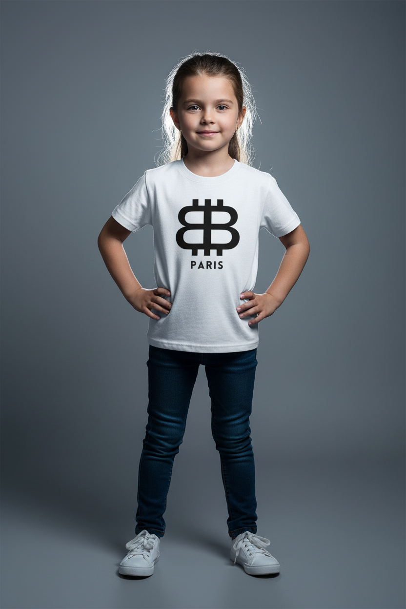 Pariser Flair. Bitcoin-Wurzeln. Das Bitcoin Paris Kinder-T-Shirt bringt kleinen Legenden die Attitüde des linken Ufers näher. Mit minimalistischem Text und maßgeschneidertem Design ist es für Kinder gedacht, die große Fragen stellen – und eine noch größere Zukunft vor sich haben.