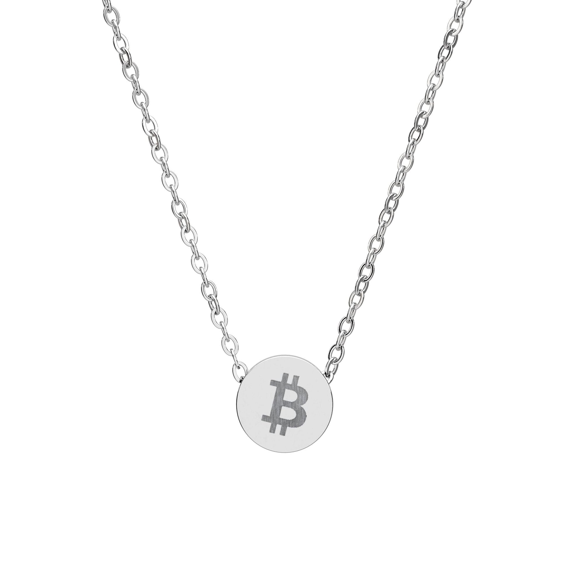 A small, minimalist circle necklace engraved with a subtle Bitcoin symbol. Lightweight and polished, it sits close to the collarbone for everyday wear and layered styling. The simple disc feels modern and understated — a quiet nod to crypto culture that reads as personal rather than flashy. Its surgical-grade stainless steel core and optional PVD finishes keep the shine steady through daily life, whether worn solo during coffee runs or layered for a night out. This piece slips easily into the routines of people who follow digital finance: traders, developers, and community builders who want jewelry that speaks their language without shouting. It pairs naturally with casual denim, office blazers, or a hoodie and headphones, and adds a thoughtful touch for meetups, launches, or conferences.
