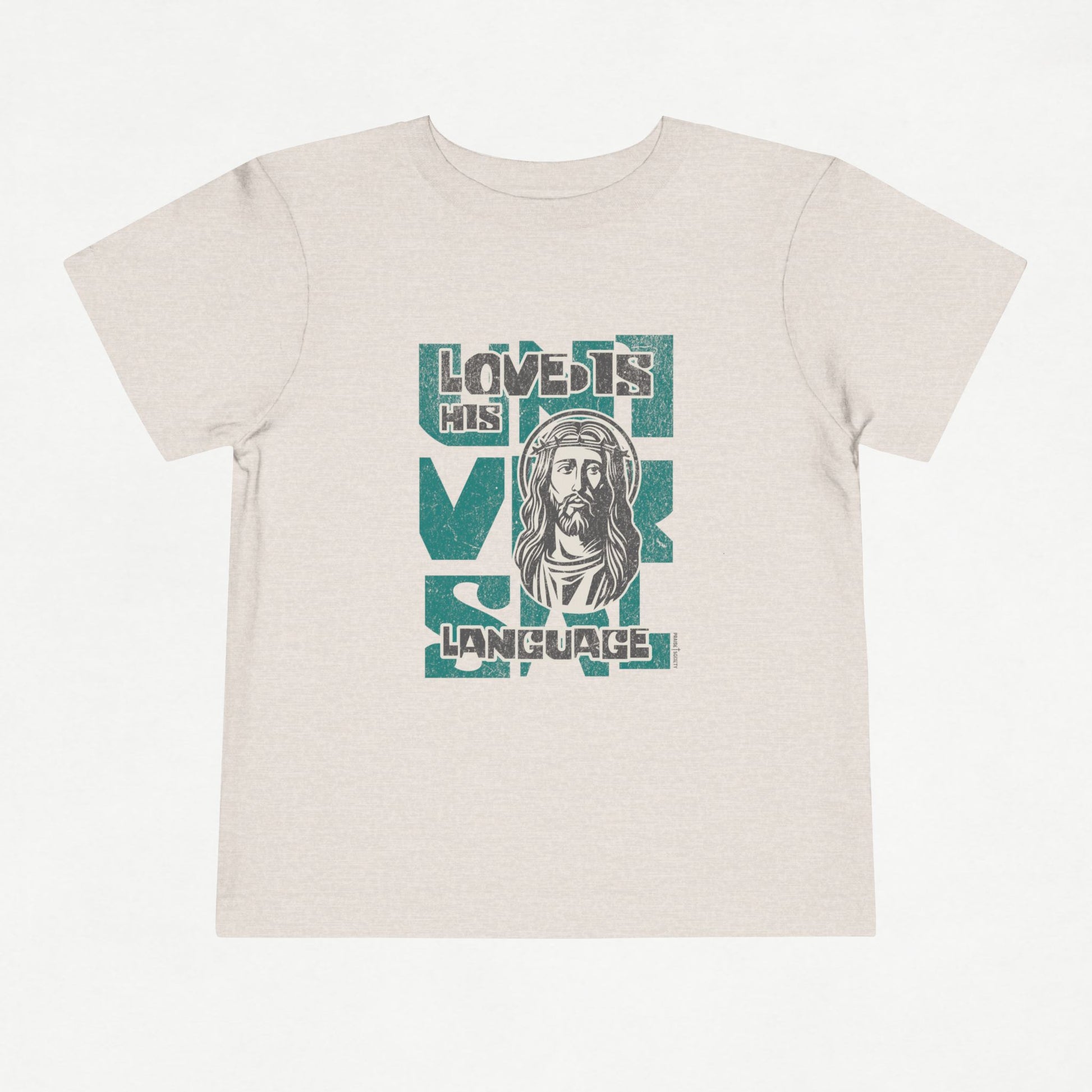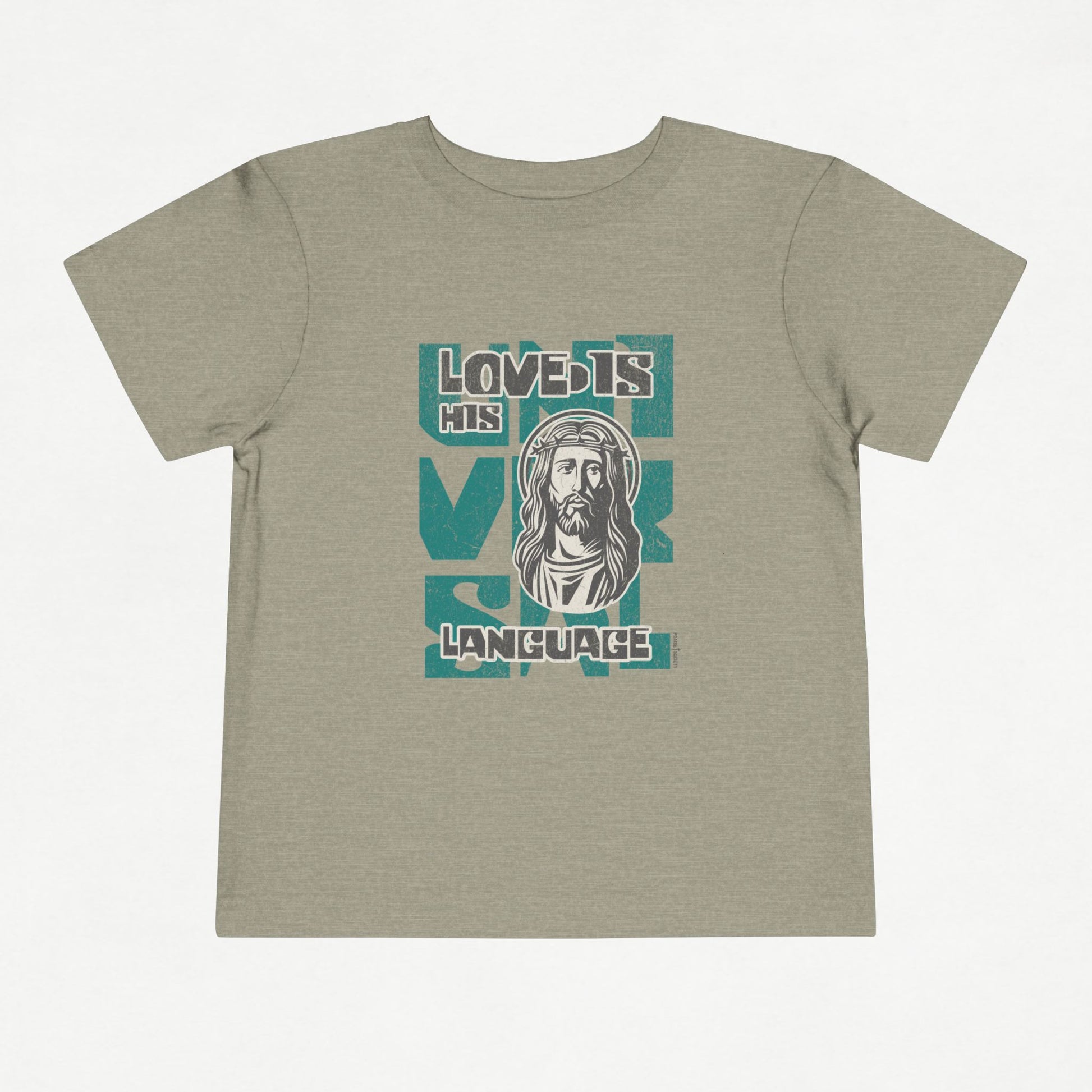 A Gentle Reminder of God's Love The Universal Love Language (green graphic) Toddler T-Shirt is a heartwarming way to clothe your little one in Gods' promises. Inspired by John 3:16, this tee reminds us all of the depth of Gods' love: For God so loved the world that He gave His one and only Son, that whoever believes in Him shall not perish but have eternal life.